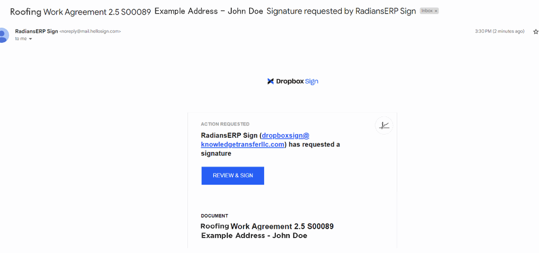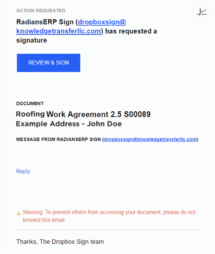 1. Go to your email and look for the email from RadiansERP with the Subject: Work Agreement 2.5 or Retail Agreement